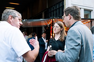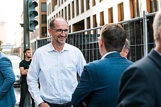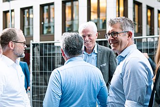 Aber auch die Location selbst lud dazu ein, über Innovation und Investitionen in Immobilien nachzudenken: Das noch nicht fertige Four-Viertel ist ein prestigeträchtiges Projekt in der Frankfurter Innenstadt mit vier neuen Hochhäusern auf einem ehemals vollständigen privaten Gelände, das in Zukunft mit Foodhall, Gewerbe, Hotellerie und Handel Menschen zum Verweilen einladen soll.