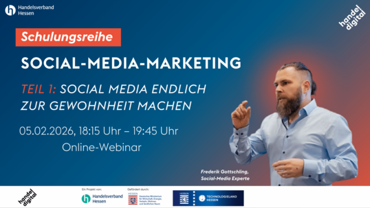 24.11.2025Digitalisierung, VeranstaltungAktuelle Infos kurz, gebündelt und stark – das gibt es zukünftig in unserem neuen Onlineformat "handel.digital Espresso – Kurz & Stark". Wir laden einmal im Monat dazu ein, sich Ihren kurzen Digi-Input zu holen. Es geht um gesetzliche Änderungen, Aus- und Weiterbildung und digitale Handlungsempfehlungen für den hessischen Handel.Newsletterversand erleichtert!
